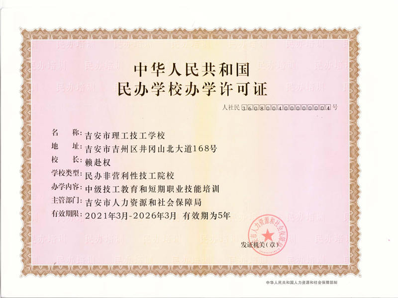 吉安市理工技工學(xué)校是經(jīng)吉安市人力資源和社會保障局批準(zhǔn)設(shè)立的一所全日制技工學(xué)校,學(xué)校坐落在歷史文化名城吉安市中心城區(qū),毗鄰吉安市廬陵文化生態(tài)園,環(huán)境優(yōu)美,交通便利。