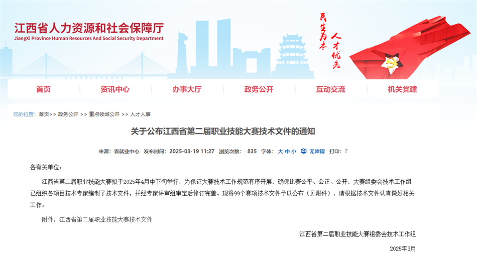 為深入貫徹落實職業(yè)技能競賽體系的建設(shè)要求,進一步引導(dǎo)廣大青年走技能成才、技能報國之路,江西省第二屆職業(yè)技能大賽將于4月26日至30日在南昌隆重舉行。此次大賽以“技能照亮前程—技興贛鄱”為主題,是全省技能人才的一次盛會,也是對我省職業(yè)技能教育成果的一次全面檢閱。