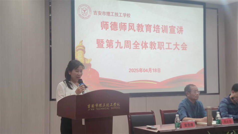 為深入貫徹落實習近平總書記關于教育的重要論述,全面提升教師隊伍思想政治素質和職業(yè)道德水平,2025年4月18日,吉安市理工技工學校召開全體教職工師德師風建設推進會,會議以“立德樹人鑄師魂,匠心筑夢強師能”為主題。