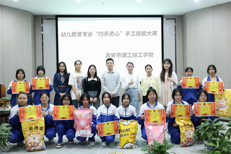 評(píng)委老師向獲獎(jiǎng)同學(xué)表示真摯的祝賀,為他們頒發(fā)獎(jiǎng)狀、獎(jiǎng)品并拍照留念。至此,幼兒教育專業(yè)“巧手靈心”手工技能大賽圓滿落下帷幕。