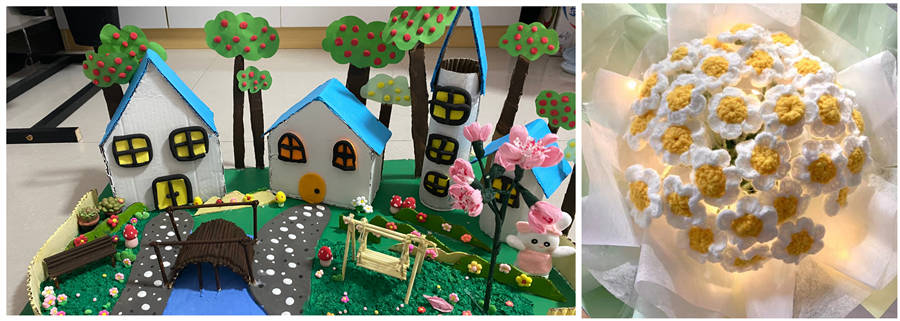 三等獎(jiǎng):周嬌、周雅琴手工作品《暖》;劉怡手工作品《洋甘菊花束》;邱寧艷、劉鑫手工作品《四季與“泥”》。