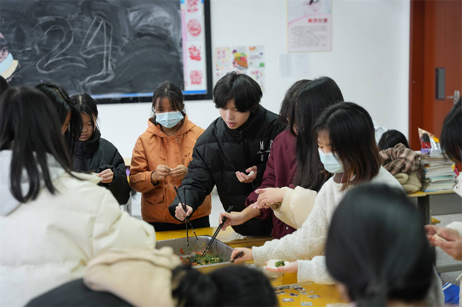 在活動過程中同學們圍在一起,相互配合,分工合作,歡聲笑語不斷,雖然很多同學是第一次包餃子的“新手”,動作略顯笨拙,但在其他同學的帶領(lǐng)下,包出來的餃子還是有模有樣,可以感受到大家都享受在其中、沉浸在其中,此時的理工校園已然成為一個其樂融融的大家庭,討論聲、歡笑聲交錯進行,冬至的溫暖與快樂充溢在每個人的心里,也包進了每一個玲瓏可愛的餃子。