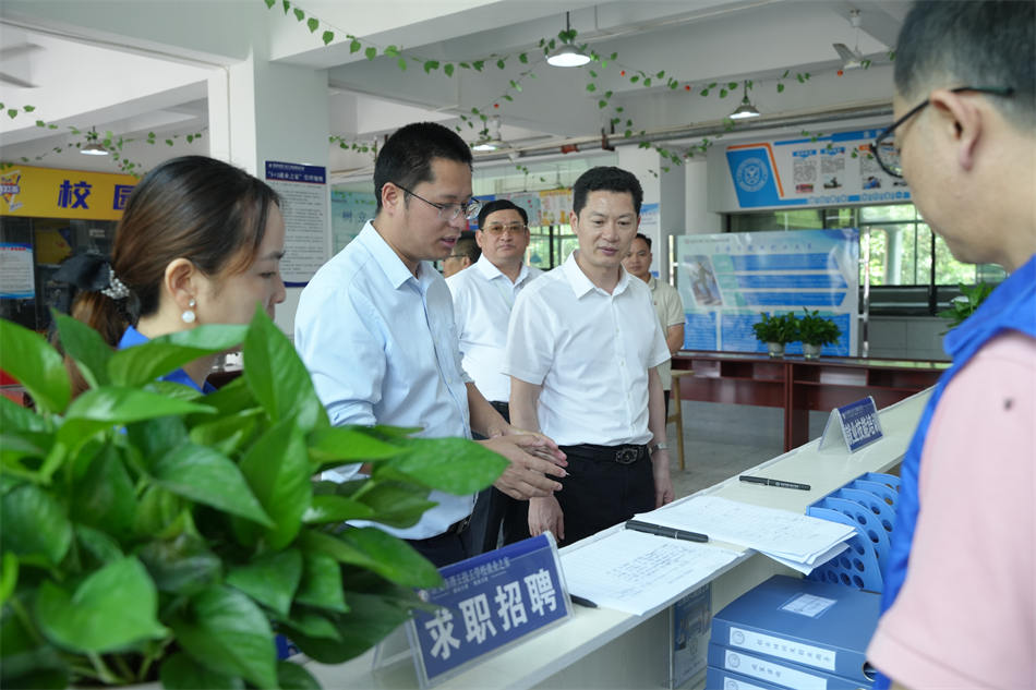 會后,調(diào)研組在董事長賴赴權(quán)和執(zhí)行校長汪榮華的陪同下,實地參觀了我校的“5+2就業(yè)之家”、教育教學(xué)、實習(xí)實訓(xùn)等辦公辦學(xué)環(huán)境,圍繞畢業(yè)生的就業(yè)保障及建設(shè)、落實勞動者自主擇業(yè)、市場調(diào)節(jié)就業(yè)、大力發(fā)展職業(yè)教育、構(gòu)建公共服務(wù)體系、培養(yǎng)結(jié)構(gòu)型優(yōu)良人才等相關(guān)問題開展了深入交流。