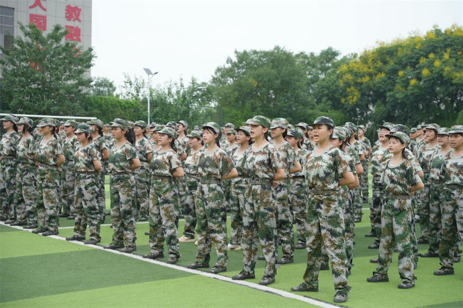 結營儀式,仿佛是一場盛大的告別與啟程。綠茵場上,沒有了往日的喧囂與緊張,取而代之的是一種難以言喻的寧靜與美好。一排排身著迷彩服的新生們,宛如初升朝陽下的勇士,精神抖擻,站姿筆挺,眼神中閃爍著軍訓錘煉出的堅韌與自信之光,那是青春最耀眼的徽章,熠熠生輝。