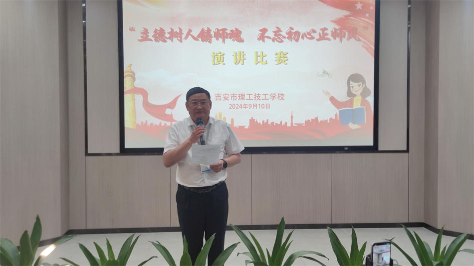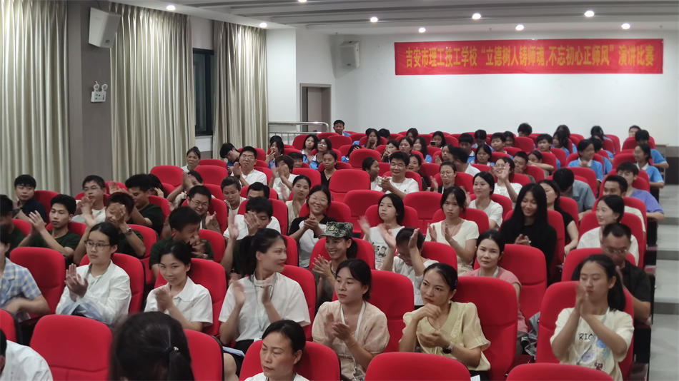 “其身正,不令而行;其身不正,雖令不從”,為大力弘揚(yáng)教育家精神,在第40個(gè)教師節(jié)來(lái)臨之際,吉安市理工技工學(xué)校成功舉辦了一場(chǎng)隆重而意義深遠(yuǎn)的師德師風(fēng)演講比賽。本次大賽以“立德樹(shù)人鑄師魂,不忘初心正師風(fēng)”為主題,旨在弘揚(yáng)高尚師德,強(qiáng)化教師職業(yè)責(zé)任感與使命感,激勵(lì)全體教職員工不忘初心,牢記教書(shū)育人的神圣職責(zé),共同營(yíng)造風(fēng)清氣正的教育環(huán)境。