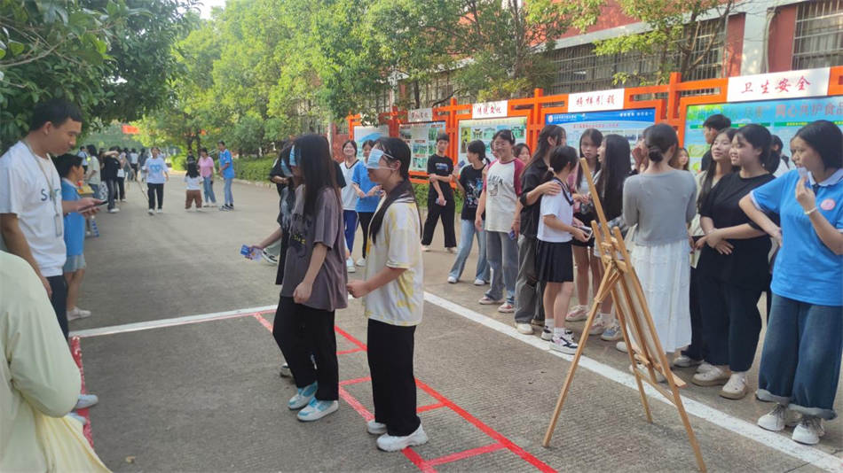 活動當(dāng)天,校園內(nèi)彌漫著濃厚的節(jié)日氣氛。下午15:30,游園會正式拉開帷幕。步入傳統(tǒng)游戲區(qū)域,只見大家臉上洋溢著興奮與期待,紛紛參與到投壺、猜燈謎、套圈等趣味活動中。在投壺區(qū)域,學(xué)生們井然有序地排隊等候,每個人都全神貫注,眼睛緊盯著遠(yuǎn)處的壺口,屏氣凝神,力求一擲即中。每當(dāng)有同學(xué)精準(zhǔn)命中,周圍便爆發(fā)出陣陣歡呼與掌聲。而在猜燈謎區(qū)域,則是一片智慧與歡笑交織的景象。學(xué)生們有的低頭沉思,眉頭緊鎖,試圖從字里行間尋找線索;有的豁然開朗,相視一笑,分享著解開謎底的樂趣。每當(dāng)一個謎題被解開,那份成就感與團(tuán)隊協(xié)作的喜悅油然而生。套圈區(qū)則充滿了緊張與刺激,這里是技巧與運氣的較量。學(xué)生們或穩(wěn)健出手,成功將圈套中夢寐以求的獎品;或遺憾地與獎品擦肩而過,但無論結(jié)果如何,那份純粹的快樂與參與感都讓他們樂在其中,流連忘返。這些游戲不僅考驗了參與者的技巧和智慧,更讓大家在游戲中體驗到了中秋節(jié)的傳統(tǒng)樂趣。每當(dāng)有人成功完成游戲挑戰(zhàn),便能獲得精美的小禮品或集章,集章越多,兌換獎券的機(jī)會也就越大,這種獎勵機(jī)制極大地激發(fā)了師生們的參與熱情。