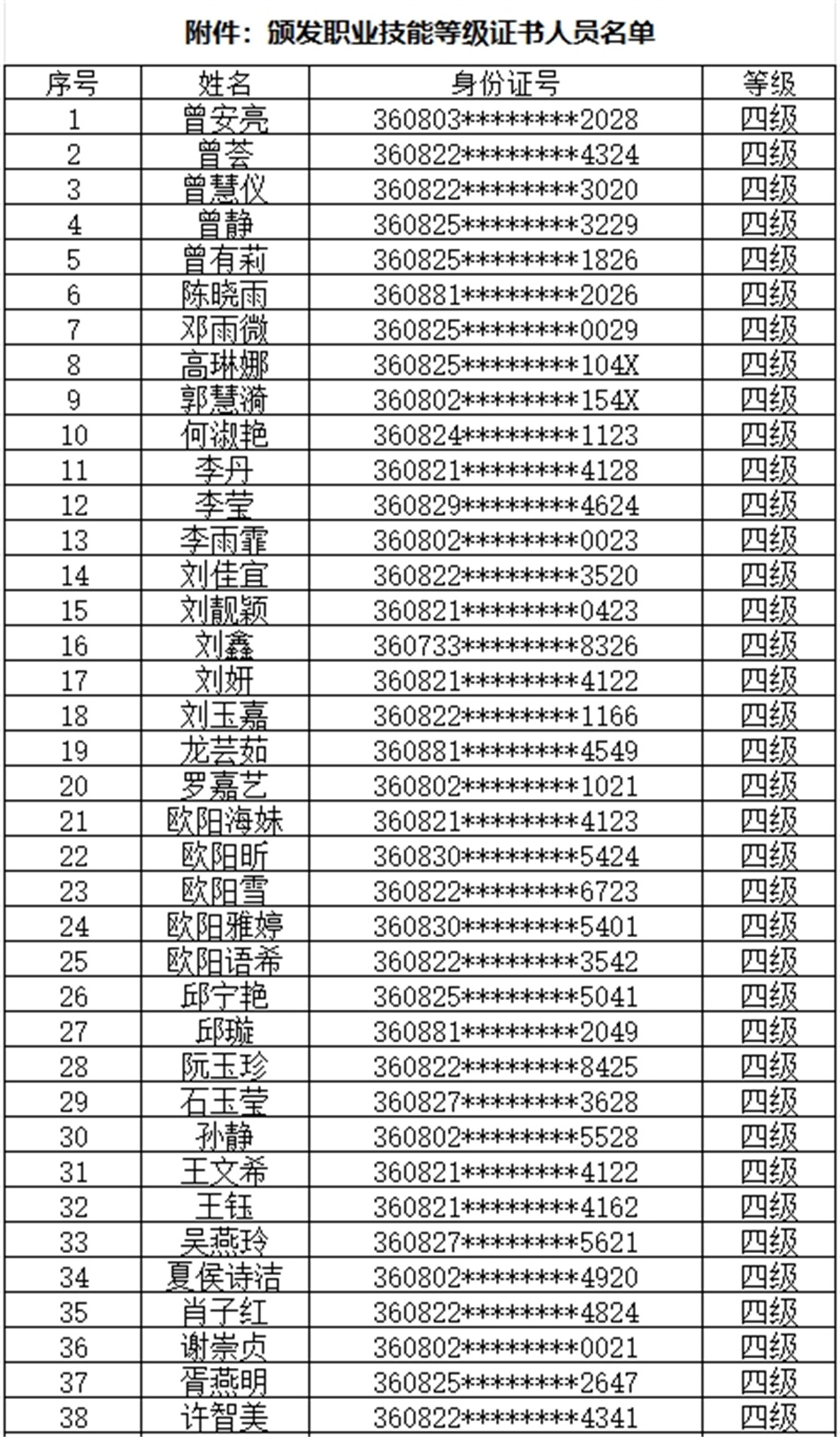 附件:頒發(fā)職業(yè)技能登記證書人員名單