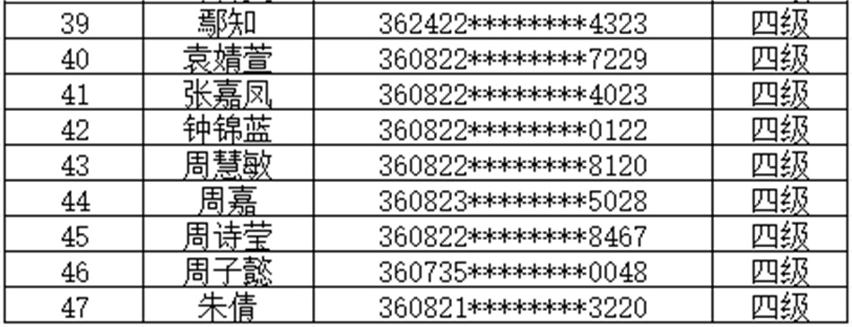 根據(jù)《江西省人力資源和社會(huì)保障廳關(guān)于遴選備案職業(yè)技能等級(jí)認(rèn)定社會(huì)培訓(xùn)評(píng)價(jià)組織的通知》(贛人社字(2020)302號(hào))、《江西省人力資源和社會(huì)保障廳關(guān)于公布江西省第二批職業(yè)技能等級(jí)認(rèn)定社會(huì)培訓(xùn)評(píng)價(jià)組織的通知》(贛人社字(2022)128號(hào))文件要求。按照《關(guān)于開展“互聯(lián)網(wǎng)+職業(yè)技能等級(jí)認(rèn)定”試點(diǎn)工作的通知》(贛人社字(2020)397號(hào))精神。我校于2024年10月30日開展了保育師等級(jí)認(rèn)定,共47人(四級(jí)),通過認(rèn)定考核47人。現(xiàn)對(duì)認(rèn)定考核合格人員進(jìn)行公示(名單附后)。