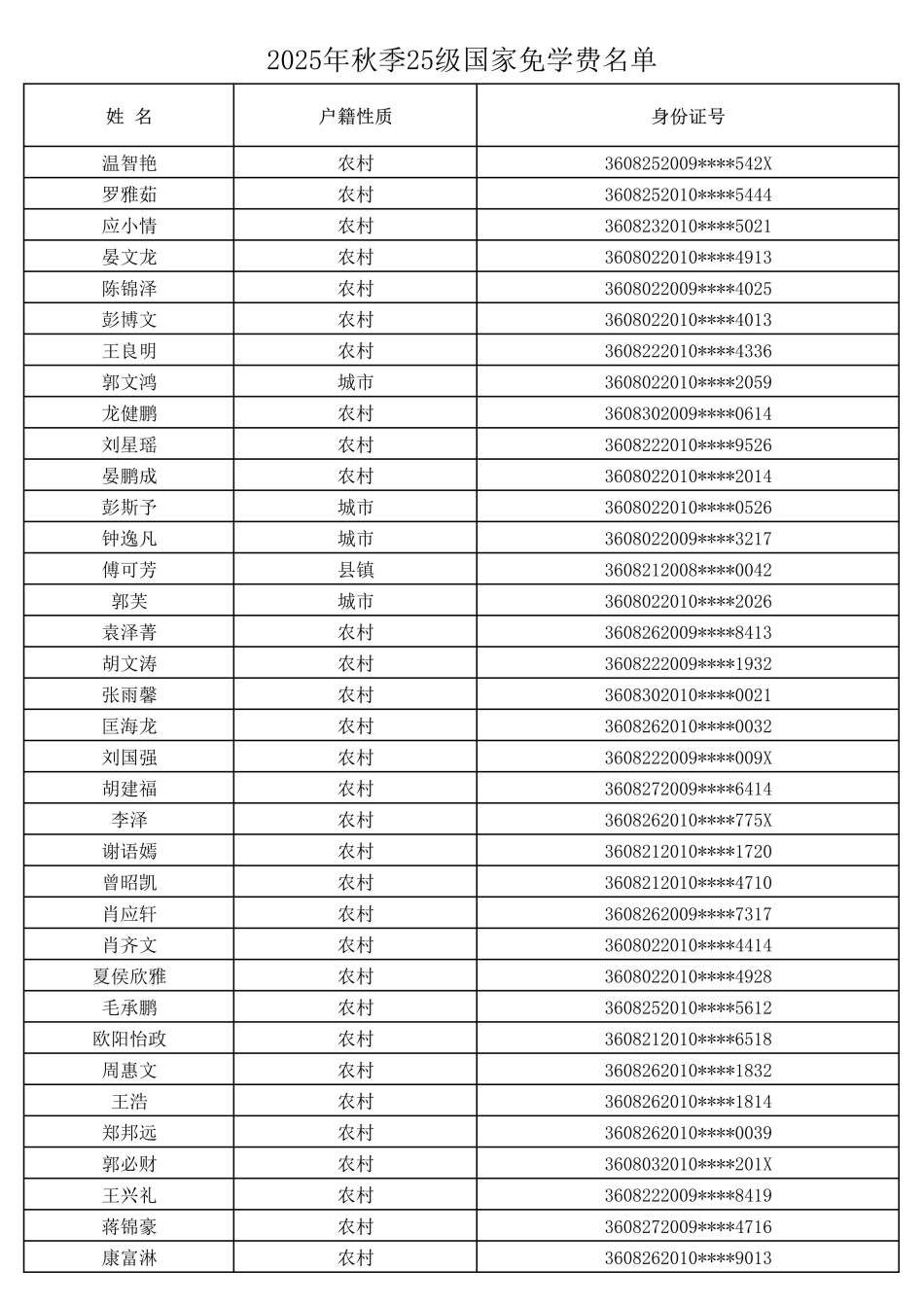 吉安市理工技工學(xué)校2025-2026學(xué)年免學(xué)費(fèi)、助學(xué)金名單已公布,如有疑問請于公示日期內(nèi)向校資助中心反映。